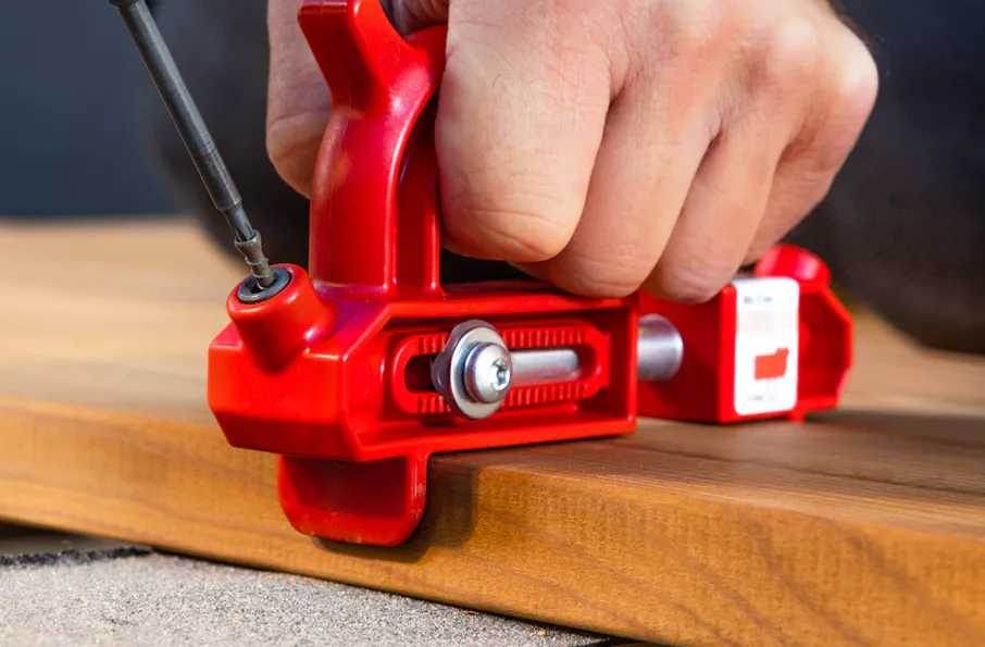 Přípravek pro nastavení stejné spáry a vedení vrutů pod správným úhlem. Ideální pro profi i DIY montáže.