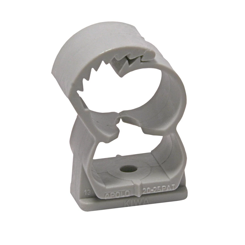 Plastová příchytka pro trubky Ø14-18mm - nastřelovací. Uvedená cena za 1ks příchytky baleno a dodáváno po 100ks. K příchytce je nutné použít hřeby o vhodné délce.